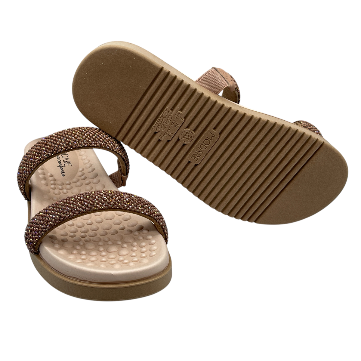 A sandália com tiras de brilho strass Modare é a escolha ideal para quem deseja adicionar um toque de glamour ao visual.